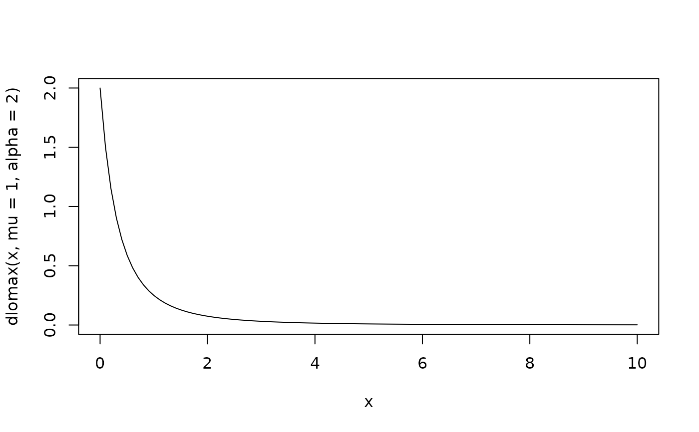 dlomax.RdProbability density function for the Lomax distribution, with Mean parametrization.