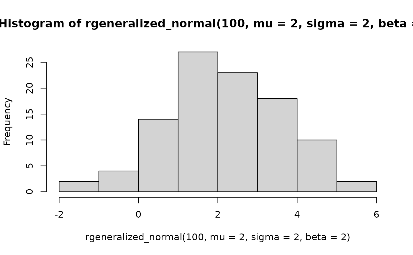 rgeneralized_normal(n, mu = 0, sigma = 1, beta = 1)