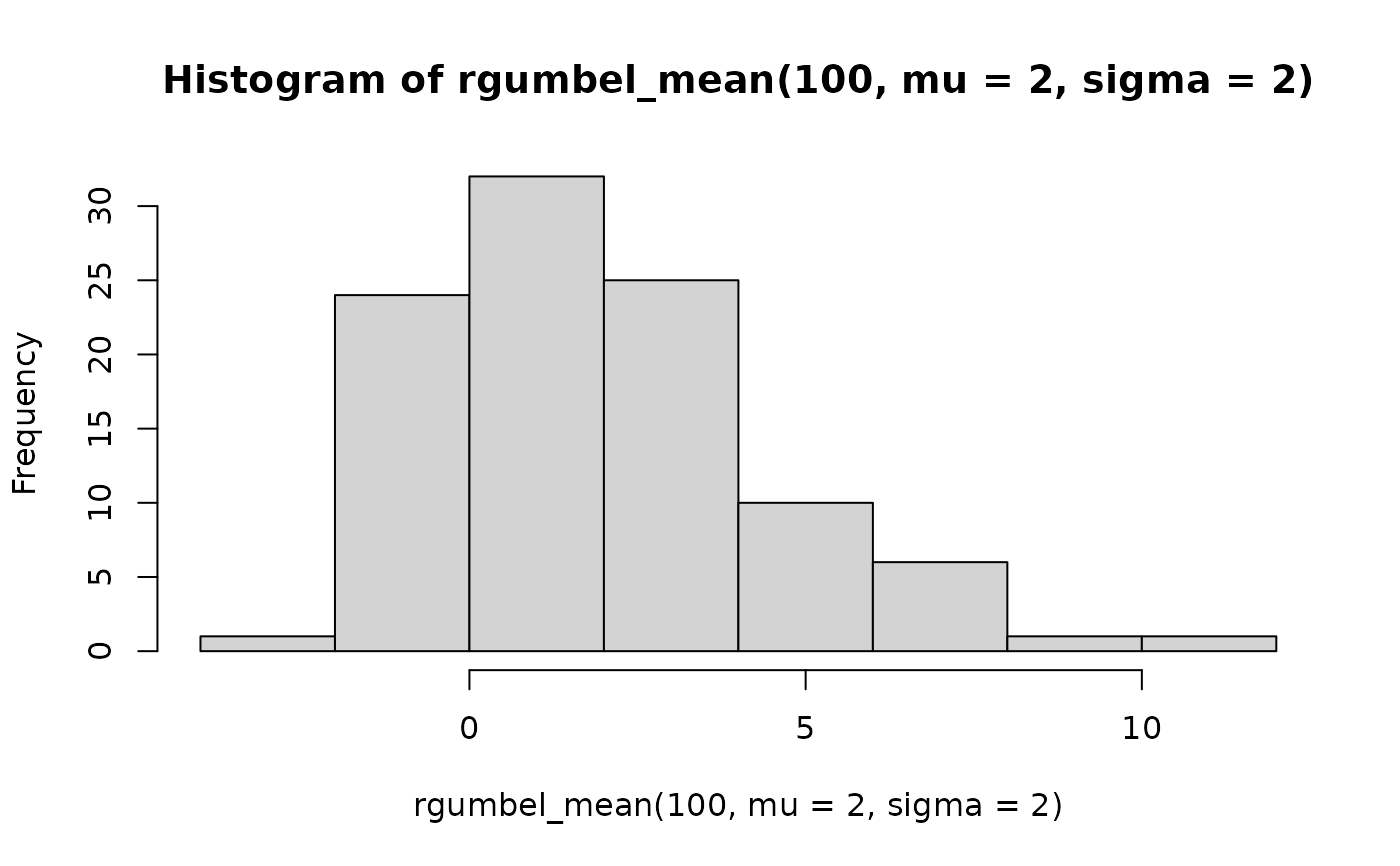 hist(rgumbel_mean(100, mu = 2, sigma = 2))