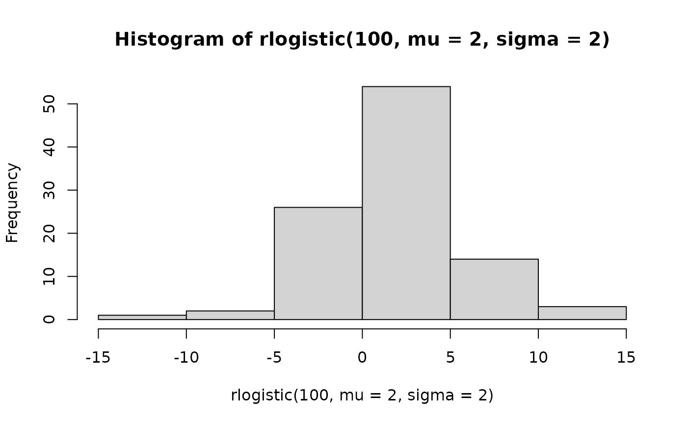 hist(rlogistic(100, mu = 2, sigma = 2))
