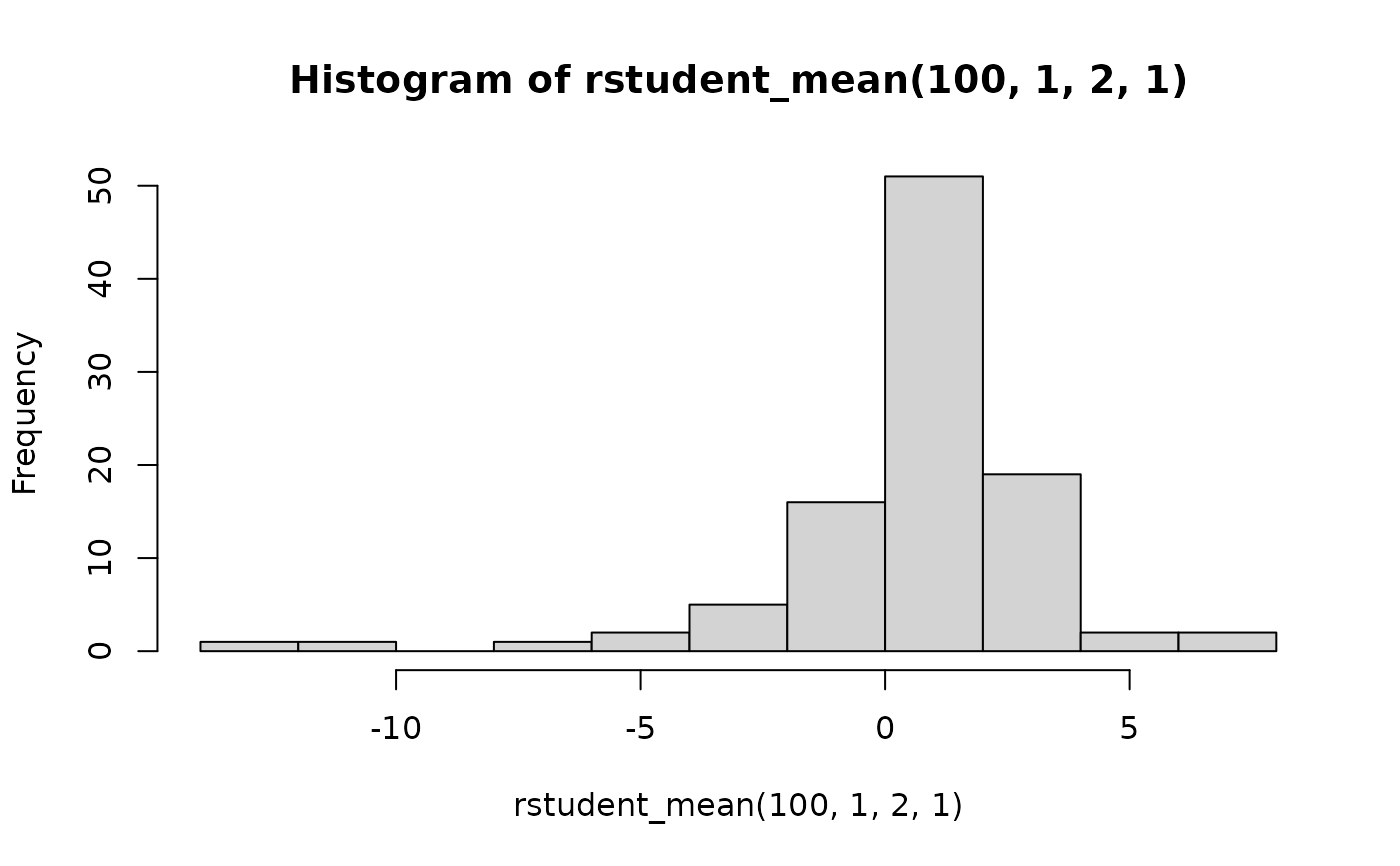 rstudent_mean.RdCustom rstudent with default df value mu and df arguments switched to comply to the Bayesfam allowing compatibility for Bayesim