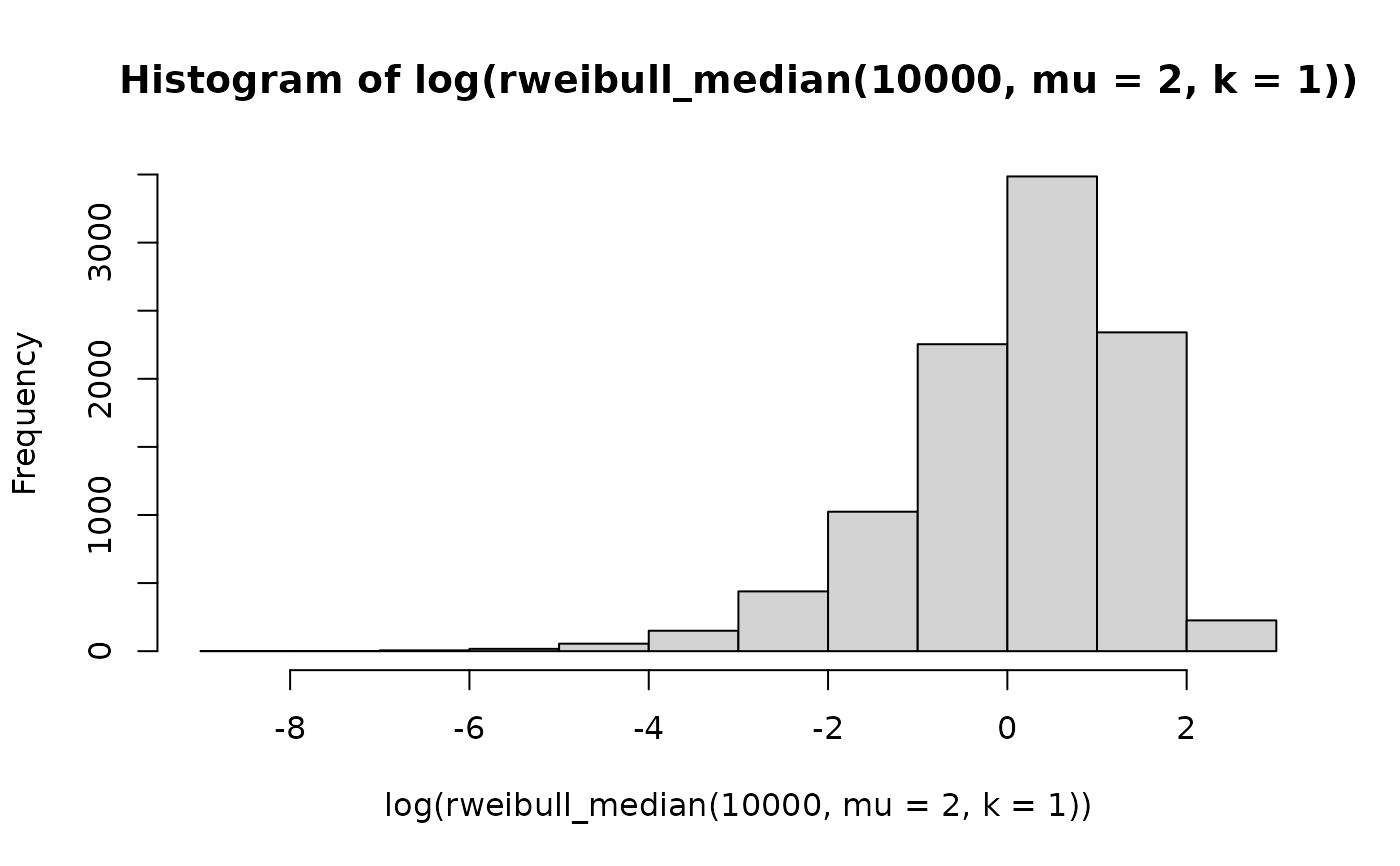 hist(log(rweibull_median(10000, mu = 2, k = 1)))